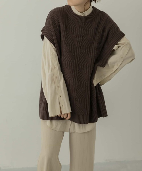 旬のレイヤードスタイルに欠かせないニットベスト 【Design】 トレンドのレイヤードスタイルに欠かせないニットべストが登場。 表情のある編み柄が印象的なこだわりのデザインは、合わせやすいベーシックなカラー展開で馴染みの良い仕上がり。 ヒップが隠れる絶妙な着丈のベストは、程よくゆとりのあるインナーも重ねやすいシルエット。 【Styling point】 シャツやカットソーだけでなくワンピースなど幅広いアイテムとのレイヤードを楽しめ、着こなしのバリエーションも広がります。 インナーによってシーズンレスで着用できるのもポイント。季節の変わり目にもおすすめ。 -LAATO- ”わたしはわたし"をコンセプトとし、 トレンドを意識するのではなく、自分の中で着たい服を確立している人をイメージ。 大人の女性のなめらかさや艶やかさを表現するデザインや、柔らかいカラーが特徴的なブランド。 シーズン:2021 A/W model : 162cm 着用サイズ : FREE ----------------------------- 《スタッフ着用コメント》 [スタッフA] 年齢 : 20代後半, 身長 : 157cm, 体型 : 普通 普段の着用サイズ : M 【着用カラー/サイズ】クリーム/FREE 【サイズ感】大きめのシルエットで、私の背でお尻の下まで隠れる長さでした!脇の部分が広く開いていて中が見えるので、インナーは必要です。 【素材感, 着心地】サイス感がゆったりしているので、楽に着られます。しっかりとしたニット素材なので少し重さは感じられます。 [スタッフB] 年齢 : 20代後半, 身長 : 168cm, 体型 : 普通 普段の着用サイズ : M 【着用カラー/サイズ】チョコレート/FREE 【サイズ感】丈感は長めで、身幅も結構広めで全体的にゆったりとしたシルエットです。脇の部分はかなりあいているので、インナーは見えますが、袖丈が短かく、重ね着などもできるので、コーディネートの幅が広がりそうです◎ 【素材感, 着心地】半袖ですが、ウール混なので暖かいです◎脇が開いているので、動きやすいです。 ----------------------------- ※こちらの商品はURBAN RESEARCH店舗での取り扱いになります。 直接店舗へお問い合わせの際は、下記店舗までお願い致します。 URBAN RESEARCH ルミネ池袋店 URBAN RESEARCH ミント神戸店 URBAN RESEARCH なんばCITY店 URBAN RESEARCH ららぽーとEXPOCITY店 URBAN RESEARCH アミュプラザ長崎店 URBAN RESEARCH COCOSA熊本店 ※商品画像は、光の当たり具合やパソコンなどの閲覧環境により、実際の色味と異なって見える場合がございます。予めご了承ください。 ※商品の色味の目安は、商品単体の画像をご参照ください。 ----------------------------- 透け感:なし 伸縮性:あり 裏地:なし 光沢:なし ポケット:なし -----------------------------