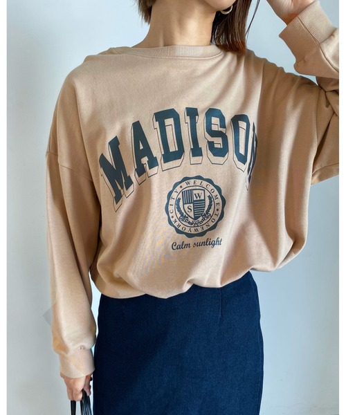 リラックス&カジュアルに着こなせるビッグシルエットのスウェットトップス。 フロントにあしらった大きなカレッジロゴがアクセントになっています。 ボディラインを拾わないゆったりとした身頃と長めの裾丈で体型カバーを狙えるのも◎。 サイドには大きなスリットを入れているのでフロントインスタイルで着こなすのもおすすめです。 ・スリットあり ・裾前後差あり 【以下グリーン参考。カラーにより多少の誤差あり】 ・透け感:透けない ・伸縮性:あり ・生地の厚さ:普通 ・裏地:なし