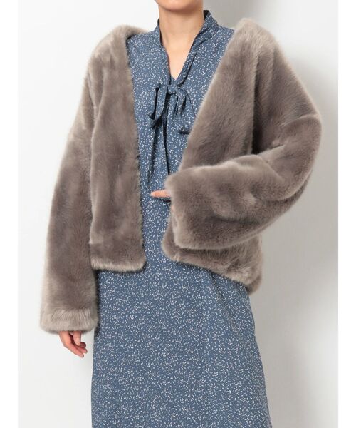 \キレイめもカジュアルもドレスにも!万能エコファーコート♡/ 去年大好評だったエコファーコートが今年も登場! 肌触りが良いミンク調の繊細な毛足にこだわったエコファーコクーンコートは、 柔らかくもシックに着こなせるマーキュリーデュオらしいカラーリングも魅力のひとつ。 形はコクーンシルエットで、今年は袖にタックを入れ、 丸みのあるシルエットによりこだわりました。 抜き襟で着るとそのぽってりした可愛さが引き立って◎。 高級感のあるボリューミーなサイジングですが、 短丈なのでボトム選びもしやすいのが嬉しいポイントです。 ▼スタイリング ペイントドットパフスリーブボウタイワンピースなど、 女性らしさの中にすっきりとしたシルエットのものにオンすれば、 メリハリのあるスタイリングが完成します。 短丈なのでスカートやフレアパンツとの相性も抜群◎。 普段はショートブーツやスニーカーと合わせ、 オフィシャルシーンではヒールをこなせば ドレスアウターとしても活躍します。 ---------------------------- 透け感:なし 裏地:あり ---------------------------- ▼おすすめスタイリングアイテム ・ペイントドットパフスリーブボウタイワンピース ・オープンショルダーマーメイドニットワンピース ・ビットベルト付ワイドパンツ