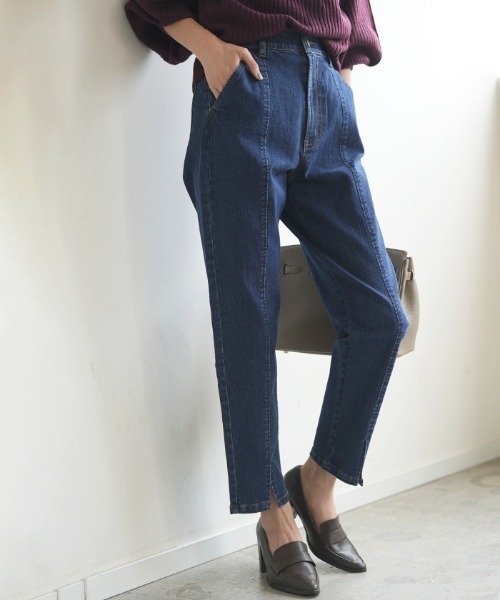 フロントにスリットが入った今年らしいテーパードパンツが新登場です★ ハイウエストでセンターに切り替えが入るので脚長効果もUP^^太すぎずにスッキリとしたテーパードシルエットは、ON/OFF問わずに着こなせるアイテム◎フロントスリットが入ることにより、女性らしさのなかに抜け感のあるデニムスタイルをお楽しみいただけます♪ウエストはフロントファスナーと内側に総ゴム付きで着脱も楽々!!オールシーズンで着用可能なおしゃれスリットデニムは必見ですよ☆ ★サイズ S:前股上27.5cm, 後ろ股上34cm, 股下67cm, ウエスト64cm, ヒップ93cm, 渡り31cm, 裾幅15.5cm M:前股上28cm, 後ろ股上34.5cm, 股下67cm, ウエスト67cm, ヒップ96cm, 渡り32cm, 裾幅16cm L:前股上28.5cm, 後ろ股上35cm, 股下67cm, ウエスト70cm, ヒップ99cm, 渡り33cm, 裾幅16.6cm XL:前股上29cm, 後ろ股上35.5cm, 股下67cm, ウエスト73cm, ヒップ102cm, 渡り33.5cm, 裾幅17.3cm ★生地:柔らかい伸縮性のあるデニム生地 ★伸縮性:あり ★透け感:なし ★裏地:なし ▼商品の色は物撮りをご参照ください。 ※モデル着用写真は外光の強い元で撮影しているので実際の色よりも明るく写っております。 ※掲載画像につきましては、撮影環境やお客様の閲覧されますパソコンや携帯電話キャリアによって、実際の商品とは多少異なったお色に見える場合も御座いますので予めご了承下さいませ。モデル着用画像はサンプルのため、色味やサイズ等の仕様に多少の変更がある場合がございます。 ----------------------INFORMATION---------------------- ▼商品のお気に入り登録 お気に入りの商品やサイズ・カラーまで、お気に入りの登録をしていただきますと、そのアイテムのセールの通知、ラスト1点になった時の通知や、完売しても再入荷通知を受け取ることができます! ▼ブランドのお気に入り登録 新商品の発売や再入荷、タイムセールやクーポン発行のお知らせなど、Futier landがお届けするお得な情報を受け取ることができます! ※通知はアプリでも受け取ることができますので、是非アプリの通知設定をお願い致します! ------------------------------------------------------------