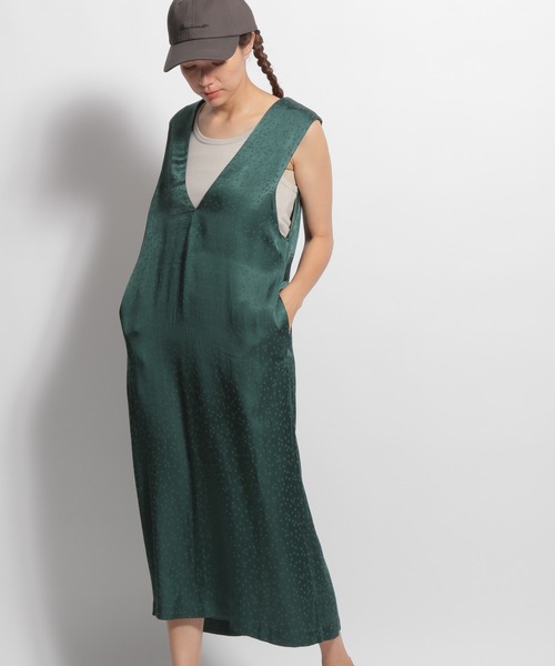 [MODE NORM CORE]レイヤードしやすい大人ジャンスカ深めVネックですっきり見えする大人なムードのジャンスカが登場。柔らかでとろんとした極上素材の星模様のジャガード生地は、ひんやりとした肌触りなのでこれからの季節にピッタリです。程良くゆとりがあるのでボディラインを拾いにくく、マキシ丈のIラインのシルエットがスタイルアップ効果も。カジュアルからきれいめまで、インナー次第で雰囲気を変えられて、オールシーズン着用できるアイテムです。