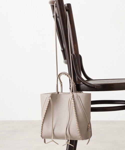 多数のリクエストありがとうございます!皆様の声にお応えして、追加生産決定!ステッチデザインがポイントになるショルダーバッグ。両サイドのファスナーを開くとフォルムが変わり、少し容量を増やすことができます。手持ちと肩掛けできるショルダーストラップ付きの2Way仕様です。シボ感のある合皮素材を使用、シンプルなデザインなので幅広いコーディネートと合わせられます。※こちらの商品は【かがりステッチショルダーバッグ / 166-1181450 】同型・同素材のお品物になります。
