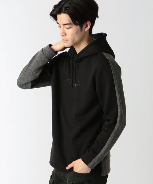 薄過ぎず厚過ぎない程良い肉感のダブルフェイス素材を使用したプルオーバーパーカーです。ダブルフェイスの編地を活かし、表と裏の色を変え、片面ソリッド、片面杢調の見え方にしています。裾部分にサイドスリットを入れて身丈に前後差を出し、フロントにはブランドロゴの厚盛ラバープリントを施しています。ブラック×杢チャコール・ホワイト×杢グレー…前後身頃と袖が配色仕様