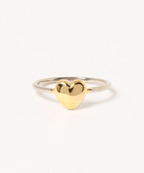 ボリュームのあるハートがワンポイントに映えるリング。 ゴールド×シルバーのバイカラーデザインや、細身のリングがモチーフの存在感をより引き立たせてくれます。 シンプルながらも、指先を愛らしく彩るアクセントアイテムです。