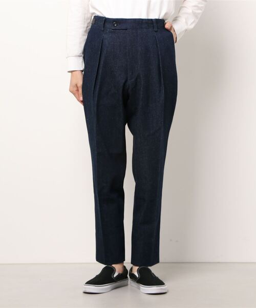 12オンスのレギュラーデニムの横糸にジャズネップ糸を入れたオリジナルデニムを使用。ネップデニムのルックスでソフトでウーリーな着用感が特徴。ジャケットとセットアップのスラックス。