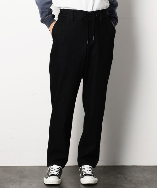 《素材》 レーヨン混ストレッチ デニム深みのある落ち着いた濃色のインディゴの色味が どこか高級感のあるデニムです。 レーヨン混紡による独特の柔らかさと落ち感があり、ストレッチ性も兼ね備えていることから、 着心地の面ではとても快適な素材です。 ※色落ちしやすいインディゴ生地なので、白、淡色の衣類との強い摩擦や濡れた状態での放置はご注意下さい。 《デザイン》 適度にゆとりのあるテーパードシルエットのデニムパンツです。 柔らかさ、落ち感、抜群な伸縮性と素材の良さを活かしたパンツになります。 デニムでありながらもカジュアルに見えすぎないルックスなので、 休日のキレイめスタイルにはもちろん、お仕事でもお使いいただけます。 きちんと感がありながらも快適な着心地、一度穿くと手放せなくなる一着です。 レディースにもおすすめです。 《セットアップ》 同素材の ジャケット(商品番号:55-01JW01)と合わせて、 セットアップとしてお召しいただけます。 ※在庫がない場合もございますので、予めご了承くださいませ。 裏地:無し 光沢感:無し 伸縮性:有り 生地の厚み:普通 ※画像の商品はサンプルとなりますので実際の商品と仕様、加工、サイズが若干異なる場合がございます。 ※こちらの商品はFIVE FOXes独自の採寸方法となっています。 本サイトのサイズガイドと採寸方法が異なる場合がありますのでご了承ください。
