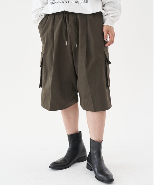 FEKETE HALF CORGO WORK PANTSインパクト抜群のボリュームワイドシルエットのハーフカーゴパンツ。しっかりと編み込まれたコットン生地を採用しておりモードな印象を兼ね備えたシルエットが魅力的な1点。ウエストゴムで着脱も楽で、大容量のポケットには簡単な手荷物もしっかりと収納可能です!※ご覧のモニター環境や撮影環境により実際の商品と多少色味が異なって見える場合がございます。ご理解の程よろしくお願いいたします。