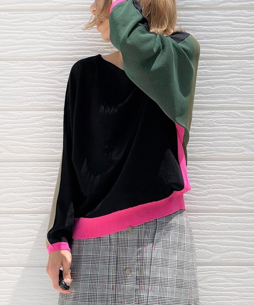 ドルマンスリーブの適度なゆるさが可愛いニットです。何色かを組み合わせたカラフルなバイカラーが可愛くおしゃれ。 前後ろで着られる、2WAYタイプが嬉しい1着です。 雰囲気をガラッと変えて着られます。 接触冷感の素材を使用しているのでサラッとした肌触りで、秋口におすすめ。 編み地も天竺編みにすることで厚みを抑え、ちょっぴり透け感を持たせ涼しい雰囲気に仕上げました。 《インフォメーション》 ◆商品のお気に入り登録 完売していても再入荷時に再入荷通知を受け取ることができますので、是非ご登録ください。 ◆ブランドのお気に入り登録 新商品や再入荷などの情報を受け取ることができますので、是非ご登録ください。