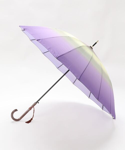 グラデーションが華やかな雨傘 傘全体についたグラデーションが華やかな印象の雨傘です。 手元にはタッセル付き♪ SPEC 開閉:ジャンプ 【SIZE】 重量:約445g 開傘時直径:約97cm