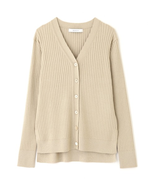 イタリアのヤーンメーカー”MILLEFILI社(ミレフィリ)”の糸を使用。レーヨンとラメを撚糸し、微かな光沢のあるしなやかな素材感に。また、ストレッチ糸をプレーティングしているので程よい伸縮性もあり。大きめ釦がポイントのワイドリブカーディガン。Vネックのプルオーバーとしても着られる襟ぐりになっています。同素材の半袖プルオーバーと重ねて着たり、袖を通さずラフに肩かけもおすすめです。