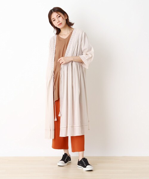 ~SHOO LA RUEのINDIAシリーズ~エアリー感のあるインド綿を使用したティアードワンピース。レースやピンタックの装飾を施したガウンは、Tシャツの上に1枚羽織るだけで雰囲気が出る便利アイテム!!デニムやロゴTシャツなどのカジュアルスタイルに羽織るのもよし、甘めのスタイリングにも相性◎夏気分やトレンド感を気軽に取り入れられるINDIAのアイテムは、1枚は持っていたいですね♪※ポケットなし※裏地なしモデル情報:身長167cm B78 W62 H88 着用サイズ:02(M)店舗へのお問い合わせ商品番号:C62-53010●製品寸法:00(FREE):着丈108cm B98cm 袖丈41cm 肩幅41cm W93cm備考: