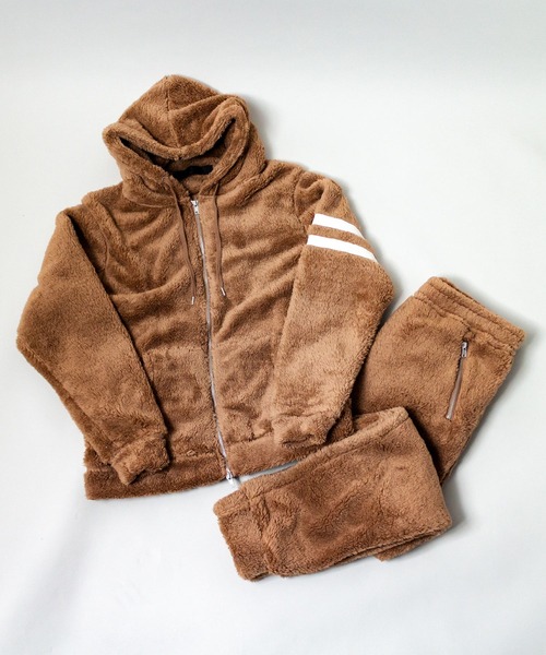 ---ルームウェアにも最適な着心地、シャギーボアセットアップー--- 【素材】 柔らかでボリューム感のある、両面シャギーボア生地を使用。 見た目にも暖かで、秋冬のシーズンにぴったりです。 【デザイン】 ルームウェア、ワンマイルウェアとしても着用できるように無駄な装飾を省いたベーシックなデザイン。 どちらも単体としても着用しやすい冬の暖かなコーディネートに最適です。 【シルエット】 スタンダードなレギュラーシルエットです。 柔らかな生地で仕立てているので、窮屈感なく着用していただけます。 カラーも4色と豊富に取り揃えた冬のマストアイテムです。 *こちらの商品はそれぞれ単品でもお求めいただけます。