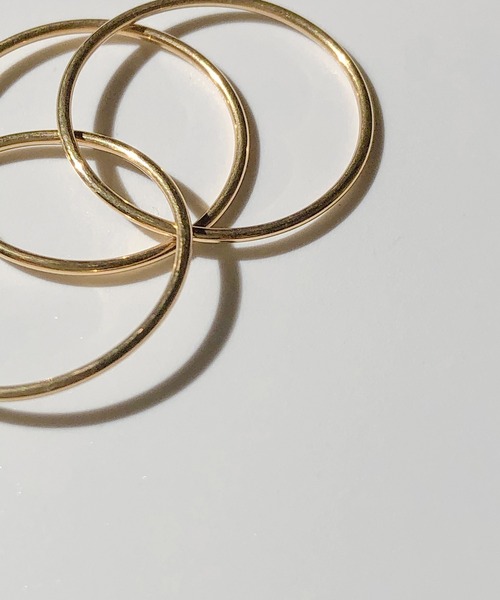 華奢なフープを連ねたリング。付け方によって3連リングの表情が変わる独特な構造で透明感と繊細な印象を加速させるアイテム。シンプルデザインで幅広いコーデにフィット。デリケートな肌の方にもおすすめ。※表面に多少の凹凸、気泡、小さな傷などがある場合がありますが加工の特性上発生するものです。※職人の手作業で最終加工しております。風合いや色味、サイズに多少個体差があります。ご留意くださいませ。