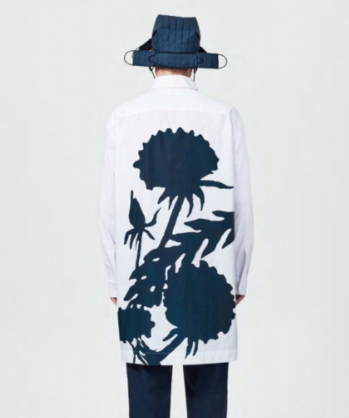CRAIG GREENデザイナーであるクレイグ・グリーンは、セントラル・セント・マーチンズ大学を卒業、 ロレアル・プロフェッショナル・クリエイティブ・アワードを受賞し、 デザインミュージアムの2012年デザイン・オブ・ザ・イヤーにノミネートされる。 ------------------------------------------------------ インパクトのあるバックプリントが施されたロングシャツ。 ★オリーブ:SUNFLOWER(ヒマワリ)、ネイビー:DANDELION(タンポポ)と、それぞれ違うグラフィックデザインになります。 また、オリーブはホワイトシャツ、ネイビーは薄くブルーがかったカラーシャツです。 後身頃の着丈を長くしたゆったりシルエット。 サイドスリットが大きく入っており、変化のあるシルエットに◎