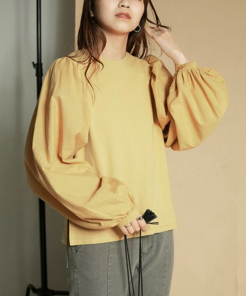 【ボリュームたっぷりの袖が可愛いカットソーが登場】 コンパクトな身頃とボリュームたっぷりの袖が目を惹く、異素材デザインカットソー。アウトインしやすい丁度いい着丈はボトムを選ばずに着ていただけますよ。カジュアルながらも女性らしいディテールが光るアイテムです。 POINT ・ボリュームスリーブ&異素材デザインで存在感UP ・ラフに着れるカットソー素材 ・アウトインしやすい着丈 COORDINATE デザインが活きるようなスタイリングがおすすめ。デニムはもちろん、チェック柄を合わせてもサマになります。ワンピースとのレイヤードもお楽しみいただけます。 ※商品画像は、光の当たり具合やパソコンなどの閲覧環境により、実際の色味と異なって見える場合がございます。予めご了承ください。 ※商品の色味の目安は、商品単体の画像をご参照ください。 ----------------------------- 透け感 : ややあり(OFFのみ) 伸縮性 : ややあり(身頃のみ) 裏地 : なし 光沢 : なし ポケット : なし -----------------------------