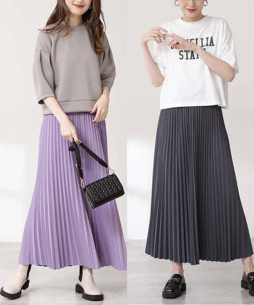 リバーシブルで2通りのスタイルを楽しめるプリーツスカート。軽く落ち感のある素材を使用し、動きのある細いプリーツデザインが足元を軽快に見せてくれます。ウエストはゴム仕様なのでイージーな穿き心地です。季節に合わせてTシャツからニットまで様々なスタイルに活躍できます。