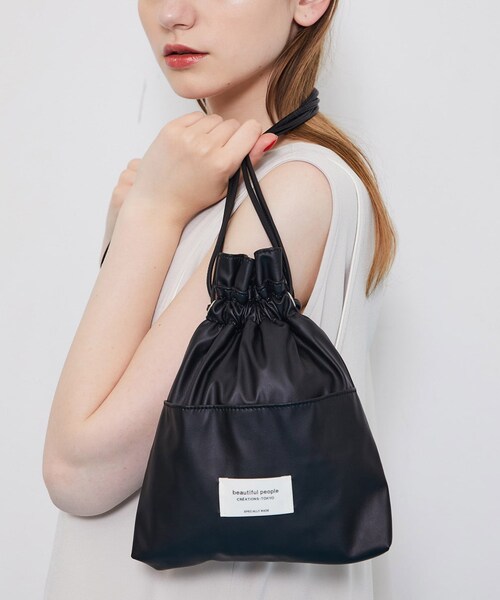 大人気beuatiful people×STUDIOUS別注アイテム ―Detail― 大人気の《beautiful people×STUDIOUS》別注シリーズから、巾着バッグが新登場。 毎シーズンご好評をいただいているbeautiful peopleとSTUDIOUSのコラボレーションシリーズ。大人が持ちたいフェイクレザー巾着バッグが新登場です。【デザイン】トレンドの巾着バッグに、beautiful peopleのアイコンであるネームタグを取り入れたデザイン。カジュアルなイメージのあ