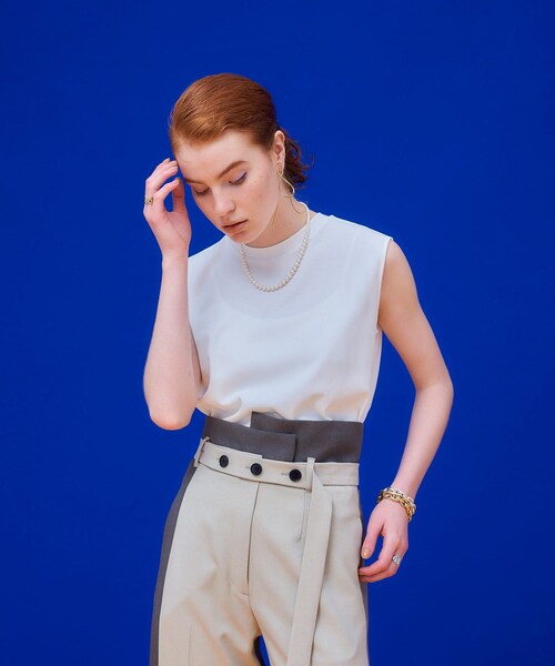 MODEL: 身長174cm 着用サイズ:0(FREE)■素材生地の織りから加工までを指定し、特注した素材を使用したカットソー。素材は大正13年東京都江戸川区平井にて創業した小野莫大小工業の『テクノラマ』を使用しています。油分をたっぷりと含み、光沢とぬめり感のある柔らかさを持ったインドの高級超長綿を特殊な紡績方法で糸にしています。スムース組織に編み立て、特殊なシルケット加工を施して、光沢感はありつつ、強撚の落ち感・ドライ感とソフト感が特徴の生地に仕上げています。通常のTシャツの生地とは比べ物にならないほど