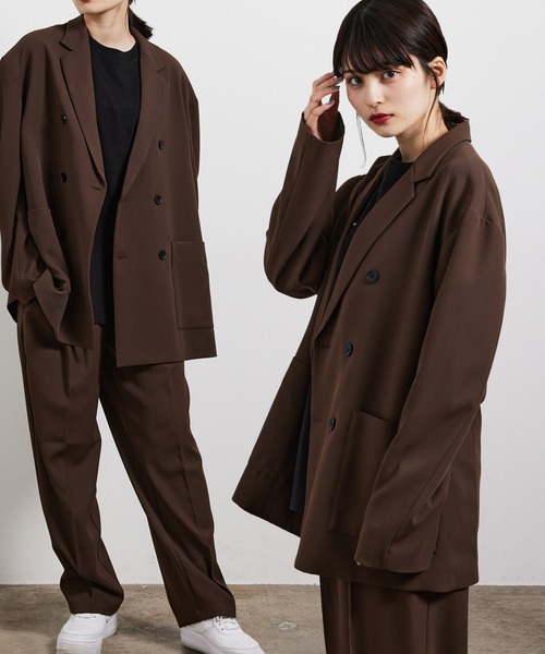 【素材】 ふっくらと柔らかいタッチ感とカルゼ独特の表情ある表面感が特徴のポリエステル素材。 【デザイン・シルエット】 オーバーサイズではあるものの、すっきりしたノッチカラーにパッチポケットとクリーンな印象かつトレンドのダブルジャケット。 ブルゾン感覚で着用できるようなデザインとシルエットです。 【カラー】 定番で汎用性の高いブラックとモカブラウンに加え、トレンドカラーのオフのラインナップです。 【スタイリング】 同素材のパンツで合わせるトレンドセットアップのコーディネートもおススメですがオーバーサイズなのですっきりしたシルエットのパンツでメリハリのあるスタイリングもおススメです。 【同素材アイテム】 ・ANL81090 ソフトタッチカルゼBIGブルゾン ・ANV81000 ソフトタッチカルゼダブルジャケット ・ANS81040 ソフトタッチカルゼワンタックスリムパンツ ・ANS81050 ソフトタッチカルゼワイドタックパンツ ----------------------------- 裏地:あり 光沢感:なし 透け感:なし ポケット:あり 伸縮性:ややあり 生地の厚さ:普通 ----------------------------- 【モデル着用サイズ】 身長177cm 着用サイズL