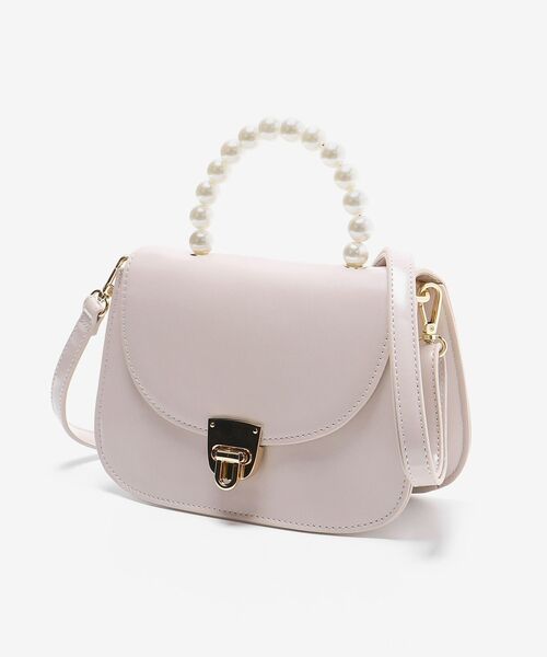 大きなパールの持ち手が可愛いガーリーバッグ♪艶感のある表面でゴールドの金具なので高級感があります。付属のショルダーストラップで付け替えが出来るのでシーンに合わせてご使用いただきやすいです◎コンパクトなフォルムながら、収納力があるのも嬉しいpointです!