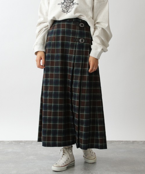 ーーーマニッシュな印象のチェックキルトスカート。ラップ風とプリーツの組み合わせが女性らしいアイテムです。ーーースクールライクなタータンチェックが特徴のキルトスカート。動くたびにプリーツが揺れる動きのあるアイテムです。ロゴTやスウェットと合わせれば古着風の今年らしいスタイリングに◎ベストやシャツと合わせればクリーンなスタイリングもできる着回し力抜群のアイテムです。