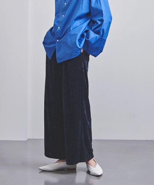 ベロア素材が秋冬らしい雰囲気のイージーパンツ。■デザインワイドなシルエットとウエストがゴム仕様でリラックスした穿き心地。落ち感とクラッシュベロアの光沢でニュアンスのあるゆるっとした印象です。ポケット付きです。■素材薄手のクラッシュ加工のベロア素材を使用。ジャージーなので着心地も良く、毛足感がシーズントレンドにぴったりのアイテムです。■コーディネートカジュアルな足元でデイリーにラフに着用していただきたいボトムスです。タウンユースはもちろんのこと、おうち時間にもおすすめです。============================裏地:あり透け感:なし生地の伸び:ややあり 光沢感:ありケア方法:ドライクリーニング============================【注意事項】※商品を使用前に、タグ等に記載されている「取り扱い上の注意書き」、「洗濯表示」を必ずご確認ください。※商品画像は、光の当たり具合やパソコンなどの閲覧環境により、実際の色味と異なって見える場合がございます。予めご了承ください。※商品の色味の目安は、商品単体の画像をご参照ください。店舗へお問い合わせの際は、全国のUNITED ARROWS各店舗まで下記の品名/品番をお申し付け下さい。品名:UGMSC PE EASY 67 品番:15142024930