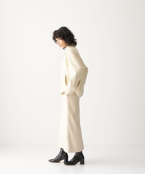 フェイクレザーは1着加えるだけで、スタイリングがぐっと締まります。つるりとした表面感は意外に着回しがしやすく、登場回数が多くなること間違いなし!■デザインインパクトのあるフェイクレザーを、すっきりシンプルなシルエットに仕上げることで、着回し力◎。身体のラインを拾いすぎないナローフレアのシルエットが、ほどよい女性らしさを演出します。■素材しなやかなフェイクレザーで着心地も〇。日常の動作に優しくなじみやすい、厚すぎない素材感。■コーディネート同素材のジャケット(4225-137-0012)とセットアップで合わせると、よりオシャレな印象に!また、ヘアリーなニットやコットン混の裏毛などと合わせても、素材のコントラストを楽しめます。秋口にはシンプルなTシャツをインにして合わせるだけでもスタイリングが決まります。============================裏地:あり透け感:なし生地の伸び:なし光沢感:ありケア方法:ドライクリーニング============================《色移りにご注意》この製品は、コーディング加工品です。素材の特性上、コーディング加工どうしや印刷物を重ねておきますと、お互いに色移りが生じる場合があります。また、色移りが生じてしまうと、修正が困難なため、製品の美しさを保つために着用及び保管の際は、下記の点に十分ご注意ください。・コーティング製品どうしを隣り合わせに保管しないで下さい。・印刷物と触れ合う状態で保管しないで下さい。・クリーニング後は、ビニール袋を外し、重ね置きしないで、通気のよい所に保管して下さい。<CITEN(シテン)>2021年秋冬シーズンからスタートした新ブランドCITEN(シテン)。~FUTURE ESSENTIALS.~これからの良い服って、なんだろう。 Long Lifeで、快適で、いろんなライフスタイルにもフィットする服ではないでしょうか。そんな服をカタチにするために必要なエッセンスで構成されるブランド「CITEN」。素材や機能を丁寧に選ぶ、Well - Choice。着る人が大切に使えるような工夫を凝らす、Well-Design。価格を超えた価値を提案する、Well-Price。Wellの積み重ねから、Well-Madeな服へ、そして着る人の暮らしに欠かせない服へ。「CITEN」は新たな時代の、新たな視点・支点・始点です。【注意事項】※画像の商品はサンプルです。実際の商品と色味、仕様、加工、サイズ、素材等が若干異なる場合がございます。※工場の生産の都合上、納期が変更になる場合がございます。発送日の前後については予めご了承ください。※入荷状況により、お客様への発送が店頭販売より遅れる場合もございます。※商品を使用前に、タグ等に記載されている「取り扱い上の注意書き」、「洗濯表示」を必ずご確認ください。※商品画像は、光の当たり具合やパソコンなどの閲覧環境により、実際の色味と異なって見える場合がございます。予めご了承ください。※商品の色味の目安は、商品単体の画像をご参照ください。お問い合わせの際は、下記品名/品番をお申し付けください。品名:フェイクレザーナローフレアスカート 品番:4224-137-0005