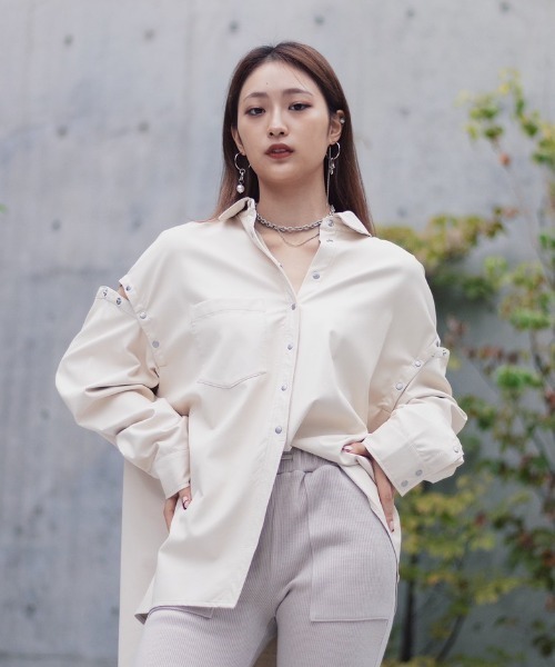 程よいハリ感と、さらりとした質感が特徴のフェイクレザーを使用したオーバーサイズシャツ。 シャツとしても、秋先からさらりと羽織れる軽アウターとしても使いまわしの利くアイテム。 アームホールのドット釦を開けると、スリット風にインナーをのぞかせることができ、着こなしのアクセントに。 アシンメトリーになったヘムラインはカットオフで軽さを出し、抜け感をプラスしてくれます。 同素材で展開の別注ニットコンビレザースカートとセットアップコーディネートもおすすめ。 別注ポイント シーズン幅広く着て頂けるように、より薄くてシワになりにくいフェイクレザー生地を選びました。 【AULA AILA/アウラアイラ】 自分らしさを大切にしながら、魅力を引き出し、 何気ない日常に彩りを添え、纏うという高揚感から心を豊かにする、大人のハイエンドカジュアル 【お買いものをお楽しみいただく為に!】 ▼商品のお気に入り登録 完売カラーの再入荷通知や、ラスト1点の通知、セールの通知も受け取ることができます。 ▼ブランドのお気に入り登録 新商品や再入荷など、いち早くブランドのお得な情報を受け取ることができます