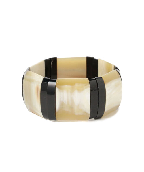 モダンな雰囲気に ブラックとナチュラルホワイトのカラーリングがモダンな雰囲気をプラスするブレスレット。いくつもパーツが連なっており、ゴムで伸び縮みするので取り付けやす仕様になっています。 抜群の存在感なので、シンプルなコーディネートに合わせてお楽しみいただくのも◎。 ※こちらの商品は水牛の角を使用しておりますので、個体差がございます。予めご了承ください。 【アクセサリー・小物雑貨の取り扱いについて】 ・貴金属は、体質により、かゆみやかぶれを生じる場合があります。 ・皮膚に異常を感じた場合は直ちにご使用を止め、専門医にご相談下さい。 ・家事やスポーツ、就寝時や乳幼児の世話をする時などは、身体に危害を及ぼす場合がありますので着用を避けて下さい。 ・熱伝導が高いので、高温の場所や寒冷地での着用は火傷や凍傷の原因となりますので着用を避けて下さい。 ・乳幼児が誤飲しないように、保管は十分にご注意下さい。 L’INDO CHINEUR / ランド シヌール シャルル・クトリによって2002年に設立されたパリのブランド。日本の文化やデザインにインスピレーションを得て、アジアのバッファローホーンや竹、骨、木といった天然素材を使ったナチュラル志向のアクセサリーを制作。フェアトレードや環境問題にも取り組む彼女はベトナムのローカルな職人たちだけに仕事を依頼し、彼らの文化を守りながらその価値を伝え続けています。