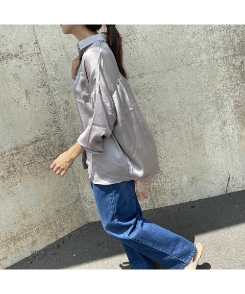 適度な落ち感が上品な印象のサテンシャツ。 なめらかな肌触りで、高級感漂う1枚。 軽やかに揺れるとろみ生地が女性らしさを演出してくれます♪ ON/OFF両方着られるデザインで着回し力もあり、価格以上の高見えする万能な1枚です! ※モデル身長:161㎝ ◾️クリックポストにて代引きをお選び頂いた方は、400円プラスさせていただき、宅配便代引きにて発送させていただきますのでご了承下さい。 ◾️カラー グレージュ ◾️サイズ 着丈:73cm 身巾:64cm 袖丈:42.5cm ※多少の誤差は予めご了承ください。 ◾️素材 ポリエステル100%