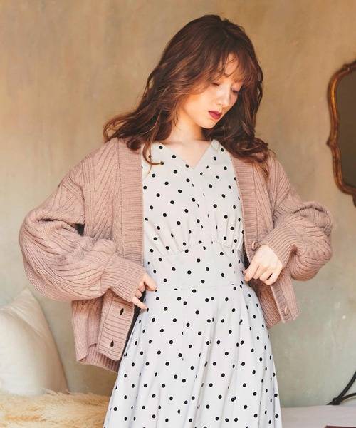 すっきりと開いたVネックカットが、女性らしさを惹き立てるケーブル編みカーディガン。幅広いボトムスやワンピースと相性抜群で、秋冬のコーデに欠かせない一枚です。さりげなくバックリボンを取り入れた、バックスタイルまでぬかりないアイテムです。