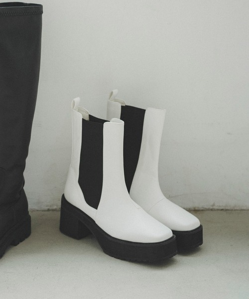 今季らしいボリューム感のあるサイドゴアブーツ。足首が隠れるミドル丈のシンプルなデザインに、高さのあるヒールで脚長効果を期待できます。フェミニンなスカートやワンピースとも相性抜群で、カジュアルすぎないコーディネートを楽しめます。