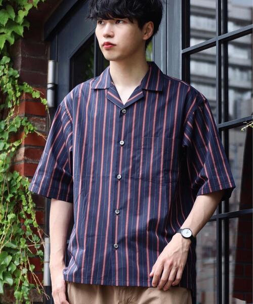 <風早ゆうた(WEARISTA)×green label relaxing>ブリティッシュ ストライプ 5分袖 オープンカラー シャツ