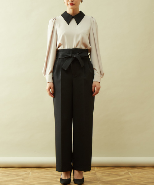透けづらい梨地を使用したブラウスです。 バイカラーの衿がアクセントのシンプルさがスタイルときちんとして見せてくれます。 袖口はカフスですが、たくし上げやすい巾があり、着ていて窮屈さはなくストレスフリー。 カフスに付いたボタンもバイカラーになっていて、ポイントになっています。 袖が大きいブラウスが多い中、落ち感素材ですっきりとシンプルに作られているのでトレンドに左右されることなく長く着れます。 どんなボトムスとも相性が良く着回し力も抜群! ※手洗い可能(詳しくは洗濯表記をご覧くださいませ)