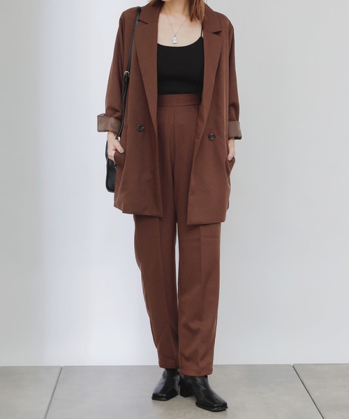 COLONY 2139 WEB・一部店舗限定アイテムセットアップとしてはもちろん、単体でも着用可能!ご自宅でのイージーケアが嬉しいセットアップ【1着でコーデが決まる優秀セットアップ】柔らかく軽い風合いのウールライクな生地を使用したセットアップ。セパレートでも着まわせるので幅広いコーデでお使い頂けます。きちんと感とトレンド感を演出しつつ、カジュアルコーデにも気軽にも取り入れられるデザインです。ジャケットは少しだけドロップショルダーにすることで抜け感のあるモダンな印象に。パンツはウエスト下のタックでお尻まわりをカバーしながら、センタープレスで美脚を演出。後ろゴムで着用時のストレスなく、前側はトップスインした際にスッキリと綺麗な見え感になるようにしています。ベーシックで着まわしやすい3色展開で、幅広いシーンに重宝します。・ウールライク素材なので、チクチクせず履き心地◎・バックウエストがゴムなので履き心地に優れています・シワになりにくくご自宅で手洗い可能なイージーケア【素材】ウールライクなポリエステル素材。イージーケアでしわになりにくく、ウォッシャブルでご自宅でのケアが可能です。ナチュラルなストレッチ性もあり、履き心地も抜群。【コーディネート】メンズライクな印象のセットアップは合わせるアイテム次第で汎用性の高いアイテムに。透け感のあるオーガンジートップスやタートルネックのトップスやニットなどと合わせれば、エレガントな雰囲気に。普段のトレーナーやパーカー、ロンT、フリースと合わせてもカジュアルにキマります。ヒールやパールネックレスなどを合わせれば、結婚式やセレモニーにも◎。着回し抜群で長い期間ワードローブで大活躍するアイテムです。■素材・洗濯についてトップス: ポリエステル100% ボトムス: ポリエステル100%裏地: ポリエステル100%洗濯:手洗い可着用スタッフ 157cm※こちらの商品は、WEBと一部店舗での取り扱いになります。※着用、お取り扱いの際は、商品についている品質表示とアテンションタグを必ずご確認下さい。※商品タグに記載されている商品名がWEBでの表記名と異なる場合があります。※画像の商品はサンプルです。実際の商品と仕様、加工、サイズが若干異なる場合がございます。 ※照明の関係により、実際よりもやや明るく見える場合がございます。またパソコンなどの環境により、若干製品と画像のカラーが異なる場合もございます。予めご了承くださいませ。 【お気に入り登録】してお得な情報をCHECK!!・「商品のお気に入り登録」で再入荷通知や、ラストの通知、セール通知も受け取ることができます。・「ブランドのお気に入り登録」で新商品や再入荷など、お得な情報を受け取ることができます。__________________________________________________________