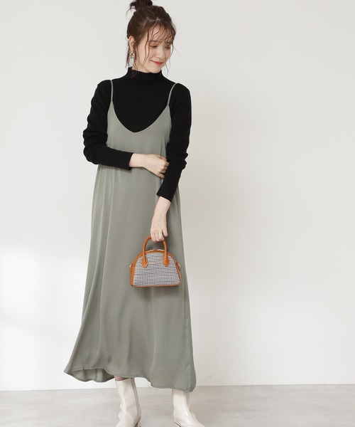 大人っぽく着られるキャミワンピース。落ち感のある軽い素材を使用し、ボディラインを拾いすぎず、広がりをおさえたシルエットです。 心地よく着られるよう背中はシャーリングで柔軟性があり、バックリボンで少しフィット感の調節ができます。 季節に合わせてノースリーブやTシャツ、ニットとレイヤードするとロングシーズン活躍します。 ※肩紐の長さ調節できます。