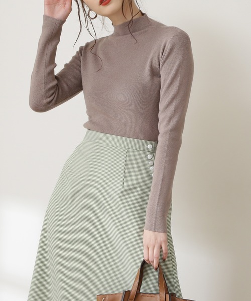 秋冬にぴったりな暖かみのあるリブニット。首元の切り替えがなく、身頃から編地続きのハイネックラインが特徴です。シルエットはボディラインに程よくフィットし、着心地の良いシンプルなデザインです。スカートにもパンツスタイルにも相性よく、キャミワンピースのインナーとしてレイヤードスタイルにもお勧めです。