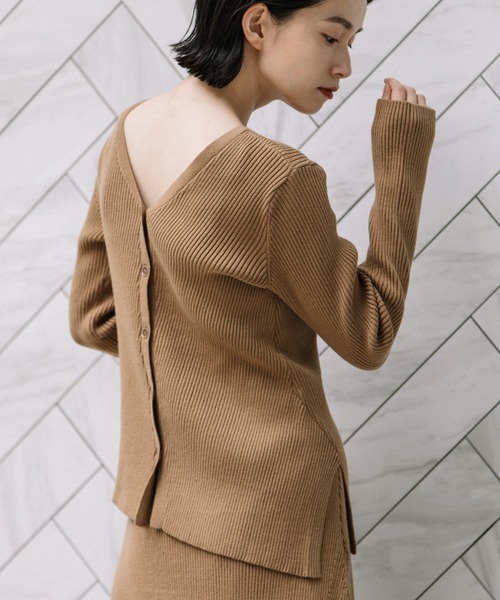 □2021 AUTUMN & WINTER COLLECTION□◆アシンメトリーなヘムラインで着痩せ効果が狙える!2WAYリブトップス兼カーディガン◆<MATERIAL>暖かみのあるコットンアクリル糸にストレッチヤーンをプレーティングし、くっきりとした編み目と、高いストレッチ性を出しました。さらに12GGのリブ編みに編み上げ、暖かみがありながらも程良い肉感でシャープな印象に仕上げました。膨らみのあるアクリルを使用して、ウールブレンドの様な見え方が特徴です。普通のアクリルに比較して柔らかく、スポンジ性に優れていて暖かみがある秋冬や春先の立ち上がり商品に適した素材です。<DESIGN>ウール混のような見え方のリブニットできれいなラインがでる2wayトップスです。シャープな印象のリブ編みを生かし、女性らしいシルエットのトップスを作りました。伸縮性があり、身体にフィットするリブ編みで、きつすぎず緩すぎずなサイズ感に拘り、大人が着られる絶妙なシルエットに仕上げています。また、身頃の地の目を斜めに取る事で、身体のラインをひろいづらく、気になるラインをごまかす効果と、デザイン性も高めています。カーデにもプルオーバーにもなるシンプルで王道的なデザインですが、アシンメトリーなヘムラインや、片側に入ったスリットがさりげないポイントとなっています。細身のシルエットなのでインしてももたつかず、ボトムを選ばず使えそうです。同素材のスカート(ブランド品番:MN212S11)と合わせてワンピースっぽく着こなすのもおススメです。<COLOR>■チャコールグレー:程よく引き締め効果があり、すっきりとした印象のカラーで、大人のスタイリングに馴染みやすいカラーです。■グレイッシュベージュ:オートミールのようなニュアンスベージュ。黄色味も少なく、着る人を選ばない合わせやすいベージュです。■ラベンダー:ピンク味が強めな優しいパープルカラー。お顔写りを明るく魅せてくれる品のあるカラーです。■キャメル:程よい彩度が優しく安心感のあるキャメル。肌馴染みが良くお顔映えのいいフェミニンなカラーです。*お取扱いについては、商品についております品質表示、アテンションタグにてご確認ください。洗濯:手洗い可.............................≪INFORMATION ≫............................▼商品のお気に入り登録▼『♡』マークを押してお気に入り登録して頂いた商品は、セール開催の通知やクーポン発行などのキャンペーンなど、お得な情報をいち早く受けとる事が出来ますので、ぜひご登録ください。