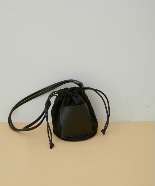 ◆2021-22秋冬◆ADAM ET ROPE' FEMME【Material】形がきれいにキープされる、ハリのあるナイロン素材を使用。ナイロンの中でも表情のある素材を選んでおり、高級感があるのが特徴。【Design】ころんとしたシルエットのデザインに加えて、素材や大きさなど、使い勝手の良さが魅力のナイロン巾着バッグ。金具をあえて使用せず、モード感のあるデザイン。外側のポケットとショルダー紐をレザーにすることで、街でもアウトドアでも使えるような、持ちやすいデザインが魅力。