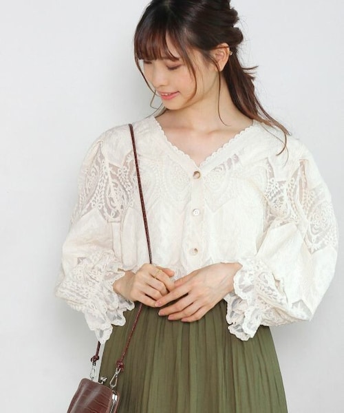 ナチュラルな風合い漂うコットンブラウス。 繊細なレースの透け感で上品な肌見せが叶う1枚です。 ボリュームのあるパフスリーブで女性らしいシルエットに。 ロングスカートやデニムパンツ等様々なアイテムと相性良く着ていただけます。 ボタンを開けて羽織りとして着こなすのもおすすめです。 袖口と裾のスカラップデザインが大人ガーリーな印象に。 Vネックで顔周りをすっきりと見せてくれます。 軽く透け感のある生地。 コットン素材で肌触りが良いのも嬉しいポイントです。 - - - - - - - - - - - - - - - - - - - - - - - - - - - - - - - - - 透け感:あり 裏地:なし 伸縮性:なし 光沢感:なし - - - - - - - - - - - - - - - - - - - - - - - - - - - - - - - - -