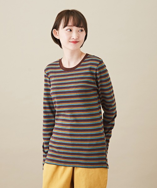 ■肌に優しいカットソー。毎日使いたい定番インナー キューブシュガーでロングセラーのボーダーTシャツが、豊富なカラーバリエーションを追加して再登場。 モノトーン系の定番カラーをはじめ、コーディネートの差し色になる彩り豊かなNEWカラーをご用意しました。 人気の秘密になっている”肌につかず離れずの程よいフィット感”が、体のラインに優しく寄り添ってくれます。 デイリーカジュアルからお家でのリラックスタイムまで幅広く着まわせるのも魅力的。 色違いで揃えても使いやすいので、毎日の定番にしたいワードローブのマストアイテムです。 チラリとレディライクに取り入れて、大人のフレンチカジュアルや爽やかなマリンスタイルをお楽しみ下さい。 ■レイヤードしやすいサイジング クルーネック×長袖のベーシックなシルエットなので、シャツやニット、スウェットとの重ね着に大活躍。 女性らしいコンパクトなサイズ感で、レイヤードもすっきりと決まり、合わせるトップスのかたちを崩さず着こなすことが可能です。 伸縮性のある生地は動きやすさも良く、程よいフィット感が体のラインにそっと寄り添います。 ネック裏のブランドロゴネームは、プリントにすることでチクチクしない細部までこだわった一着に。 「優しい肌触り」「ストレスフリーな着心地」「使いやすさ」を追求した、色違いで揃えたいワードローブのマストアイテムです。 ■-Fabric-ショートスラブフライスとは 素肌に直接触れるインナーだから、柔らかなコットン100%を使用。 「スラブ」とは太さや形の異なるスラブ糸で編まれた生地のこと。 不規則な糸で編まれているので表面に凹凸があり、肌に接する面積が少なくなることで通気性がアップ。 節の間隔が短いショートスラブは、さりげない生地の表情を楽しめます。 「フライス」はゴム編みやリブ編みとも呼ばれ、伸縮性に優れた編み方で仕立てました。 ほどよいストレッチ性が体の動きにフィットするので、インナーにピッタリな素材です。 同素材で「クルーネック・ハイネック・フリルネック」をご用意しています。 リンクコーデでの着用、色違いやデザイン違いでの購入もおすすめのアイテムです。 (品番) クルーネック:11044820/11044823 ハイネック:12044479/12044490 フリルネック:12044480/12044491 ■透け感/なし ■伸縮性/ややあり ■張り感/なし ■裏地/なし 《お気に入り登録》でお得な情報を受け取れます! ・「商品のお気に入り登録」で再入荷通知や、セール通知を受け取ることができます。 ・「ブランドのお気に入り登録」で新商品や再入荷など、お得な情報を受け取ることができます。 ※モニター・環境等により実際の商品と多少色味が異なって表示される場合がございます。予めご了承をお願い致します。 【アイテムカテゴリ】 トップス Tシャツ インナー 肌着 長袖Tシャツ ロンT ロンティー ロンTee ロングスリーブTシャツ ボーダーロンT ボーダーTシャツ 【デザイン】 総柄 ボーダー柄 横縞模様 ランダムボーダー マルチボーダー 【シルエット】 コンパクト 楽ちん 動きやすい ジャストサイズ 細い 細め 細身 タイト スッキリ M Mサイズ ワンサイズ フリーサイズ マルチサイズ クルーネック 丸首 ショート丈 ミディアム丈 ミドル丈 長袖 長そで ロングスリーブ 細い 細め 細身 細見え タイト スッキリ 美ライン 美シルエット 着痩せ効果 着やせ 【生地・素材】 伸縮性 ストレッチ コットン 綿 カットソー 天竺 薄手 【カラー展開】 グレー ホワイト ブラック ベージュ キャメル ブルー パープル サックス モカ ネイビー ブラウン ピンク ラベンダー 灰色 白 黒 茶色 紫 青 水色 桃 紺 藍色 カラフル 配色 マルチ 春カラー 冬色 アースカラー ミリタリーカラー 【ファッションテイスト】 大人カジュアル アメカジ アメリカンカジュアル ペアルック おそろい アウトドアウェア アウトドアスタイル アウトドアファッション レジャー キャンプ アクティブシーン ワークテイスト ワークスタイル ワークウェア スポーティファッション スポーツミックス 大人ナチュラル 韓国コーデ 韓流 フェス ライブ メンズライク ボーイッシュ ガーリィ ガーリー キレカジ きれいめカジュアル ワンマイルウェア 在宅ワーク テレワーク リモートワーク ルームウェア 休日コーデ ストレスフリー レイヤードコーデ レイヤードスタイル 重ね着スタイル フレンチカジュアル マリンスタイル 山登り 登山 トレッキング 大人見え 【シーズン】 春夏 秋冬 シーズンレス オールシーズン 一年中 春服 夏服 春コーデ 夏コーデ 秋服 冬服 秋コーデ 冬コーデ