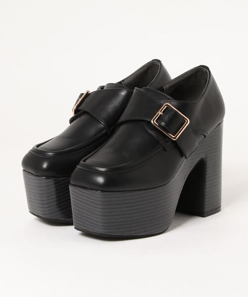 SUNNY ROOM SELECTIONブーティ? パンプス? どちらでもない、中間型の超厚底シューズ登場!圧倒的なボリューム感のソールが特徴のマニッシュシューズ。流行の極端に張り出したスクエアトゥを取り入れたスタイルは美脚効果もプラス!ストーム7cm、ヒール12cmのソールは高さのわりに高低差が少なく、意外に歩きやすくできています。モンクストラップのようなバックルデザインのストラップがよりマニッシュ感を際立たせます。パンツスタイルに合わせてよりマニッシュなコーデに、ガーリーコーデの引き締めにも◎