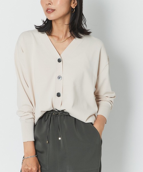 通勤にもデイリーにも使えるVネックカーディガン●デザイン普段使いからオフィスシーンまで活躍できる1枚。程よくゆとりのあるシルエットとすっきりとしたVネックが女性らしく、ボタンを留めてプルオーバーとしても着用できます。程良くキレイ見えする仕上がりなので、女性らしいカジュアルスタイルにぴったりです。●おすすめコーディネートバランスの取りやすい着丈で、スタイリングを選びません。デニムやワイドパンツ、ナロースカートを合わせても、大人の余裕を感じさせるリラックス感のあるスタイリングがキマリます。●素材レーヨン63% ナイロン37%・UVと接触冷感で嬉しい機能付き洗濯方法:手洗い透け感:なし裏地:なし伸縮性:あり生地の厚さ:普通光沢:なし【スタッフ着用コメント】《MEI》身長:161cm/普通/普段サイズ:M/着用サイズ:サイズ感:身体のラインを拾わないサイズ感。丈はヒップにかかる程度で、全体的なバランスが取りやすいです。素材感:柔らかくさらりとした素材感です。着心地:伸縮性があり、リラックス感のある着心地でした。《AI》身長:160cm/細身/普段サイズ:S/着用サイズ:Fサイズ感:程よいゆとりのあるシルエットです。お袖もゆったりしていてインナーも重ねやすいです。素材感:上品な光沢があります。ハイゲージできれいめな印象です。着心地:滑らかな肌触りです。接触冷感なのでひんやり心地良い着心地です。《Yuka.S》身長:170cm/普通/普段サイズ:M.L/着用サイズ:Fサイズ感:伸縮性もありゆったりとしたサイズ感!プルオーバーとして着用してもぴたっとし過ぎず、綺麗なシルエットが叶います♪素材感:ひんやり、肌なじみのいい素材。程よく光沢もあるので上品な印象に◎着心地:締め付け感がなくストレスフリーな着心地。UV、接触冷感機能が嬉しいポイント!《KAREN》身長162cm/普通/普段サイズM/着用サイズ:Fサイズ感:程よくゆとりがあり、身体のラインを拾わないサイズ感です。ちょうどヒップにかかるくらいの丈なので、ボトムスとのバランスが取りやすいです。素材感:クールタッチの素材で少しひんやりします。サラッとしていて肌触りも良いです。着心地:伸縮性があり、ゆったりシルエットなので着心地良く着ていただけます。==============================【注意点】※画像の商品は光の照射や角度、お使いのモニター環境により、 実物と色味が異なる場合がございます。 あらかじめご了承下さいませ。==============================【お買い物をもっと便利に楽しく♪】『♡』をクリックでお気に入り登録・「商品のお気に入り登録」で・・・ラスト1点や再入荷の通知が届きます。登録して頂いた商品だけが対象となる、あなただけのタイムセールが開催されることも!・「ブランドのお気に入り登録」で・・・新商品や再入荷など、いち早くブランドのお得な情報を受け取ることができますので、ご登録をおすすめします! ==============================