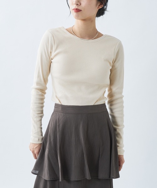 大胆なバックデザインが女性らしさたっぷりなパット付ロンT・すっきりとしたシルエットが着回しやすいカットソー・柔らかい素材とパッド付で着心地抜群・キャミワンピースやサロペットのインナーとしても最適【生地・デザイン】伸縮性があり柔らかい生地で肌触りの良いパット付カットソー。すっきりとしたシルエットで袖はあえて少し長めのデザイン。一枚ではもちろん、重ね着にも最適。アンダーバスト部分(内側)にはゴムを施しており、しっかりと固定されて安心の着心地です。大胆に開いたバックデザインがより女性らしさを引き立たせてくれます。【コーディネート】すっきりとしたシルエットなのでハイウエストのボトムと合わせるとスタイルアップに。丈は腰までしっかりとあるので色々なボトムに合わせていただきやすいデザインです。ロングスカートと合わせて綺麗なIラインが完成。サロペットやキャミワンピース、キャミサロペットやジレなどレイヤードも楽しい一枚です。【UNSPARE/アンスペア】UNSPARE/アンスペア=唯一無二の存在。SPARE(代用の)に否定を意味するUNをかけ合わせた造語。ファッションの楽しさと本質的な価値を追求し、唯一無二の存在であるという原点に立ち返り、激変した日常の様々なシーンに合わせたスタイルを提案します。【お買いものをよりお楽しみいただく為に!!】▼商品のお気に入り登録(ハートマークをクリック)お気に入りアイテムの完売カラーの再入荷通知や、ラスト1点の通知、セールの通知も受け取ることができます。▼ブランドのお気に入り登録新商品や再入荷など、クーポン配布などのお得な情報を受け取ることができます。