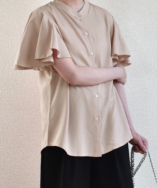 ふんわりしたフレアスリーブが華麗なブラウス。 これ一枚で華やかさと、二の腕のカバーができる優秀ブラウスです。 きちんと感漂うスタンドカラーで大人の女性に仕上がり、 こなれ感を演出。 軽やかな素材は涼しげな印象を与えてくれます。 ★ご注意 ・異物の混入につきまして 生産工場にて商品の検品を行っておりますが、異物の混入がある場合がございます。 必ずご使用前に商品のご確認をいただけますようお願い致します。 ・色落ちにつきまして 洗濯の際に移染する場合がございますので、濡れたまま放置したり、水につけ置きすることや 他の衣類との洗濯はお避け下さいませ。 ・異物の混入による怪我や、色落ちによる他の物への染色等の損害につきましては責任を負いかねます。 予めご了承を頂いた上、お買い求めを頂けますようお願い致します。 ◆平置き・メジャー採寸、大量生産品のため、個体によりサイズに若干の誤差が生じる場合があります。予めご了承ください。 ◆掲載画像につきましては、撮影環境やご覧になられる環境(モニター)などによって、実際の商品の色味と若干異なる場合がございます。あらかじめご了承下さい。 ◆ニット/デニム製品は生産の過程上、繊維の混紡・テカリ・色ムラが生じる場合がございますが、品質上問題はございません。 ◆多少の糸のほつれ・裁断上のズレなどがある場合がございます。予めご了承下さい。