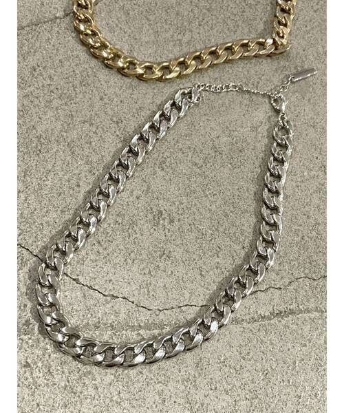 ボリューミーなチェーンデザインが目を惹くネックレス。 シンプルなTシャツなどに合せるだけで一気にオシャレになるアイテム。 1つ持っていれば重宝すること間違いなしです! ※画像の商品はサンプルです。 実際の商品と色味、仕様、加工、サイズ、素材等が若干異なる場合がございます。