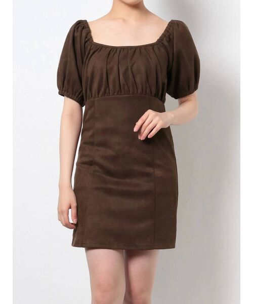 フェイクスウェード生地を使用したミニワンピースです。トレンドのパフスリーブもポイントです。裾にかけて少し広がるデザインなので、美脚効果があります。タートルトップスなどをレイヤードする着こなしもおすすめです。