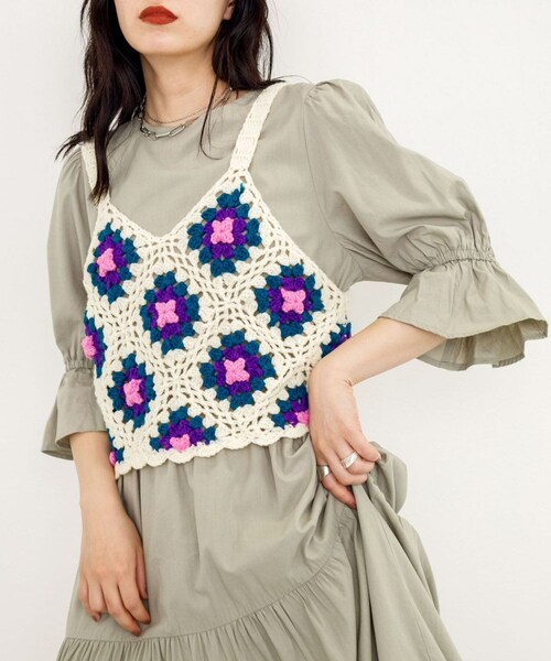 大人気!かぎ針ビスチェの新作登場春夏大人気だったカギ針モチーフビスチェが秋冬デザインで新登場。季節に合わせて落ち着いたカラーリングに仕上げました。いつものコーデにプラスするだけで旬なスタイリングにアップデート。バックリボンは自分らしい緩さに調整可能なのもポイントです。スタイリングTシャツやシャツブラウス、ワンピースなどと合わせた、トレンドのレイヤードスタイルが楽しめます。ショート丈なのでハイウエストなボトムスを合わせたスタイルアップコーデも◎。持っているだけで幅広いスタイリングにプラスできる優秀アイテムです。※商品の色はimageの着用写真ではなく、商品写真をご参照ください。※商品サンプルにて撮影しております。若干の仕様変更が生じる場合がございます。--------------------裏地:なし透け感:あり厚さ:厚め伸縮性:ややあり--------------------