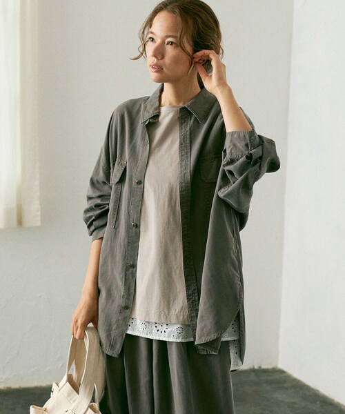 ピュアルセシン 2021 autumn&winter collection【sophisticated retro】洗練されたレトロな雰囲気を新しく取り込みながら、幸福感ある生き方を求め安らぎや優しさをテーマに装い心地よいリラックスしたスタイリング。引き続き環境に優しいサステナブルでありながら、丸みを帯びたフォルムやフラッフィーな素材感で体を包み込んだ柔らかなスタイルの提案。◇大人のカジュアルスタイルに最適なCPOブラウス◇秋冬のスタイリングに欠かせないCPOブラウスが登場です。ゆったりとしたシルエットとイージーな着心地で長く愛用していただける1枚。ボトムを選ばないスタンダードなデザインで、着回しが効きます。少し麻の入った生地は軽く、さらっと羽織としても活躍してくれます。・秋冬に欠かせないCPOブラウス・ゆったりルーズなシルエットで体型カバー◎・ドロップショルダーで締め付け感がなくイージーな着心地・前後差のあるデザインでボトムと良く馴染む・少しの艶感で大人カジュアルなスタイリングが叶う・メイン着としても羽織としても着用が可能・デイリーに着まわせるスタンダードなデザイン・秋にはヘルシーなレースインナーを、冬にはハイネックインナーを合わせてロングシーズン着用ができます・同素材のパンツ(No.2541517060)とのセットアップもオススメ============================透け感:なし裏地:なし伸縮性:なし光沢感:あり生地の厚さ:普通【スタッフコメント】年齢:20代前半/身長:156cm/普段着用サイズ:Mサイズサイズ感:ゆったり感のあるオーバーサイズです。冬にはニットなど厚手アイテムも重ね着しやすそうです。素材感:柔らかな触り心地。肌に直接触れてもノーストレスで着用ができます。============================※撮影場所やお使いのモニター環境により若干お色味が異なる場合がございます。特にロケの撮影では明るく見える傾向にございます。※予約商品はサンプルで撮影をしております。若干の仕様が変更になる場合がございますので予めご了承の上ご注文くださいますようお願いいたします 。