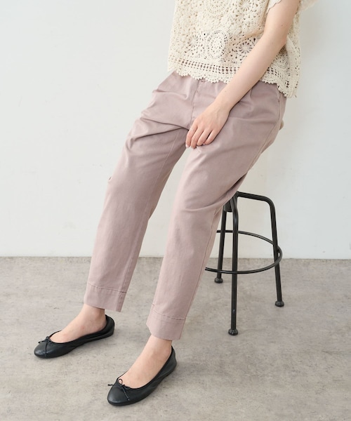 ピュアルセシン 2021 autumn&winter collection【sophisticated retro】洗練されたレトロな雰囲気を新しく取り込みながら、幸福感ある生き方を求め安らぎや優しさをテーマに装い心地よいリラックスしたスタイリング。引き続き環境に優しいサステナブルでありながら、丸みを帯びたフォルムやフラッフィーな素材感で体を包み込んだ柔らかなスタイルの提案。◇美シルエットのスリムテーパードパンツ◇スッキリしたシルエットながら、後ろがゴム仕様のウエストとタックをとることにより、イージーな着心地のパンツです。裾に向けて細くなっていくテーパード型。パンプスやフラットシューズを合わせると「綺麗見え」し、幅広いシーンで着用が可能です。5色と豊富なカラー展開になっているので、お出掛け用とデイリー用に分けてお持ちいただくのもオススメです。・美シルエットなラインのスリムパンツ・ヒップからウエストにかけて余裕を持たせたイージーな着心地・スッキリシルエットで、チュニックなど長さのあるアイテムとのコーディネートにもオススメ・後ろがゴム仕様のウエストで着脱も楽ちん・トップスを選ばないスタンダードなデザイン・明るいカラーでも透けにくい程よい厚さのある生地・デイリー、お出かけなど幅広いシーンに対応・コットンがメインで柔らかく、肌なじみの良い生地感===============================透け感:なし裏地:なし伸縮性:ややあり光沢感:なし生地の厚さ:普通【スタッフコメント】年齢:20代前半/身長:157cm/普段着用サイズ:Mサイズサイズ感:スッキリしたシルエットながら、ウエストから太ももにかけてはゆったりとした嬉しいサイズ感素材感:コットンメインの柔らかく、肌あたりも気持ちいい素材感。幅広い体型の方に着用していただけます。===============================※撮影場所やお使いのモニター環境により若干お色味が異なる場合がございます。特にロケの撮影では明るく見える傾向にございます。※予約商品はサンプルで撮影をしております。若干の仕様が変更になる場合がございますので予めご了承の上ご注文くださいますようお願いいたします。